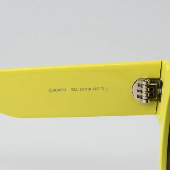 Celine MONOCHROMS Men Sunglasses Lime Green Grey Cat Eye CL40197U 93A BRAND NEWBrand:CelineModel:CL40197U MONOCHROMSColor Code:93AGender:Women / Men / UnisexFrame Color:Shiny Lime GreenFrame Shape:Cat EyeFrame Style:Full RimFrame Material:AcetateLens Color:Smoke GreyLenses Material:OrganicRx-able:YesFlex:NoLens Width:54mmLens Height:39.3mmBridge Width:18mmTemple Length:145mmFit:AdjustedSize:54mmBRAND NEW and 100% AUTHENTIC!Made in Italy.FULL RETAIL CELINE SET INCLUDES:1. Glasses2. Case3. Cleaning cloth4. Booklet5. Celine branded boxSAME/NEXT day shipping!