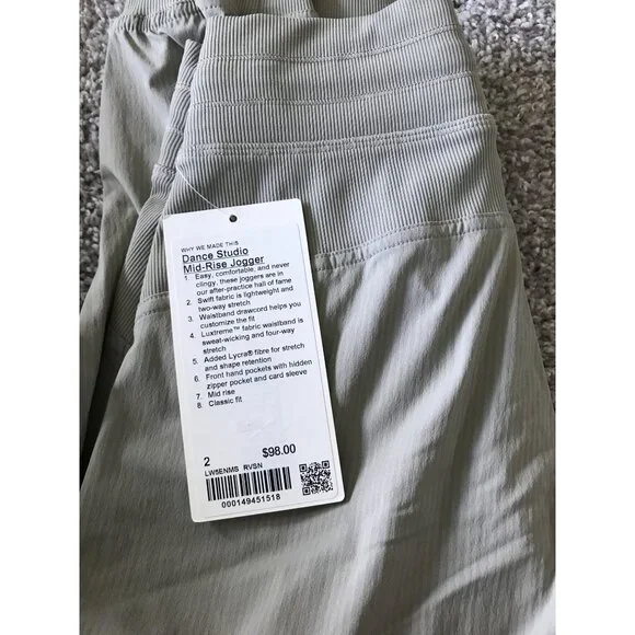 All orders ship 1-3 business days! Dance Studio Mid-Rise Joggers CONDITION: Like new/clean condition/good condition/No holes/No stains/No pilling/No fade NWTCOLOR: Warm Ash GraySIZE: 2 regular MEASUREMENTS:31.5" inseam, intended to sit below ankle for heights of 5'5"–5'8"Waist 23"Hip 33"MATERIAL: Pockets: 90% Recycled Polyester, 10% Lycra ElastanePalm Side Pocket: 89% Recycled Nylon, 11% ElastaneBody: 94% Nylon, 6% ElastaneWaistband: 88% Nylon, 12% Lycra ElastaneCARE:Machine Wash ColdDo Not BleachTumble Dry LowDo Not IronDo Not Dry CleanWash With Like ColorsWaistband drawcord helps you customize the fitHand pockets with hidden pocket for small itemsHem drawcords let you adjust your lookSmoke free and pet free home!
