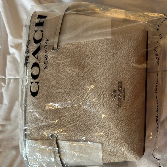 Brand new with tags!! Beautiful bag from Coach, style is “Andy Crossbody.”Color is steam (light beige/tan) with silver hardware.Features:pebbled leather, magnetic closure, fabric lining, interior zip and slip pockets, signature coach emblem and hang tag.Single shoulder strap and detachable crossbody strap.Measures approx:9.5 inches wide, 8 inches tall and 3.5 inches deep.The perfect spring and summer bag!