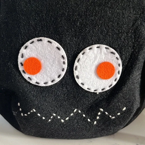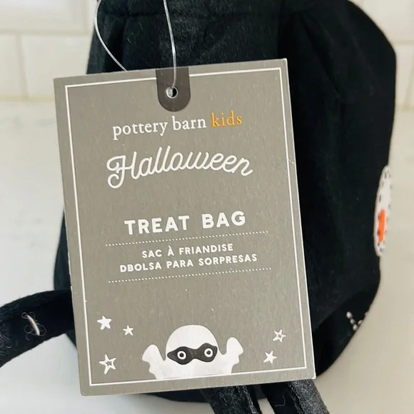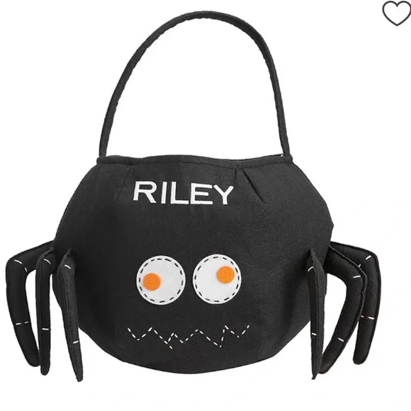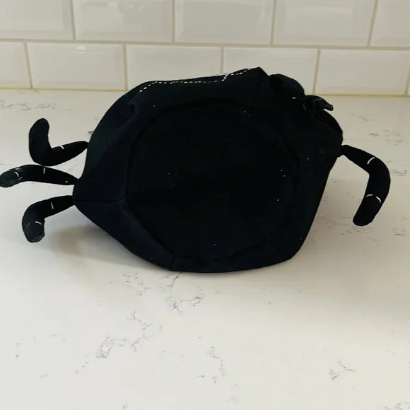 Pottery Barn Kids Spider Treat Bag. Carefully made from so-soft fabric, this playful Spider Puffy Treat Bag adds whimsy to the holiday. With lots of fun details, this one-of-a-kind design is a fun favorite. Bag features fun details like crossed eyes, spider legs and soft handle. Crafted from 100% polyester felt. Bag is filled with polyester. Handle can be folded. Approximately measurements: Overall: 9.5" diameter (at top) x 5.5" diameter (at bottom) x 8" high (not including handle); Handle (1): 0.75" wide x 13.5" drop. Excellent conditions. Brand new with tag